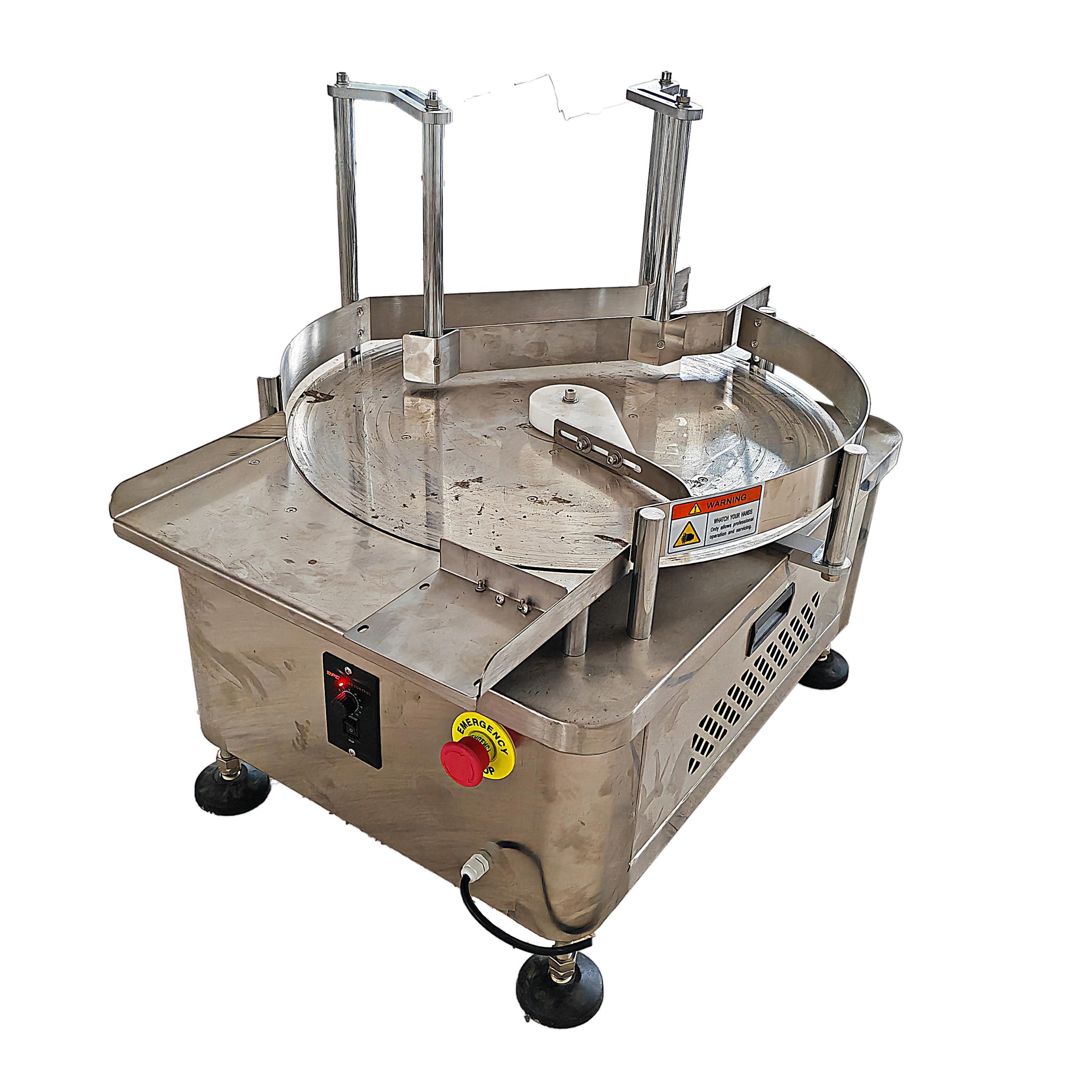 - 臺式收瓶機,可將生產線上的瓶子一個個收回到轉盤的平臺里,以防掉落