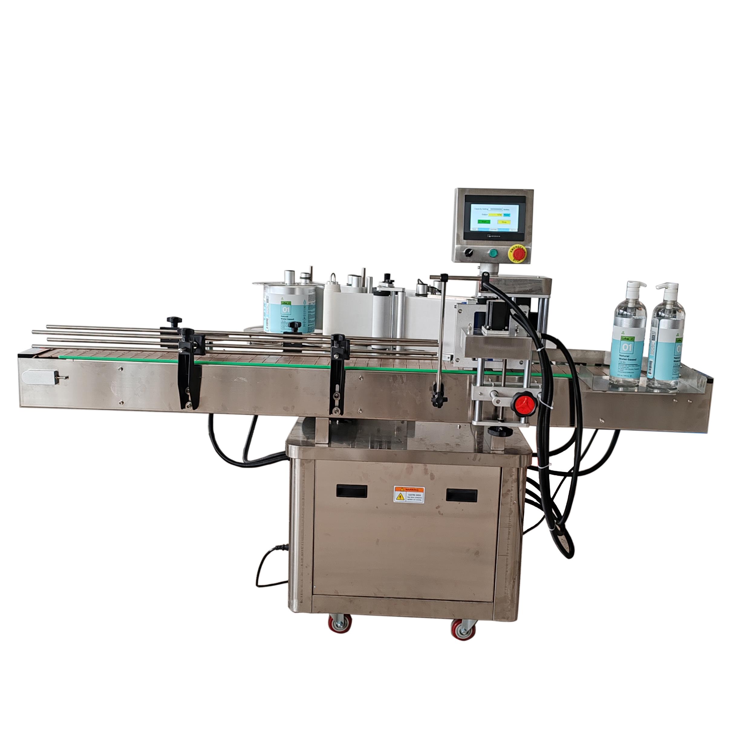 特點:速度快,貼標精準,方便易調試,不用氣,只用電,減少噪音。全自動圓瓶不干膠貼標機能自動把標簽貼到瓶子的指定位置,同時完成打印批號,日期,產量計數,在遇到缺瓶時,控制系統保證不送標,有效的防止標簽的浪費,并可根據各廠的生產特點對貼標速度作調速調整,從而保證該機能單獨使用或與其他機器聯線使用。本機可以配色帶打碼機或噴碼機使用。